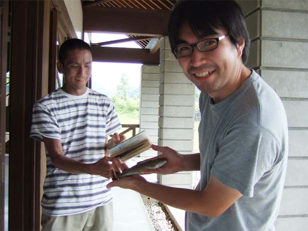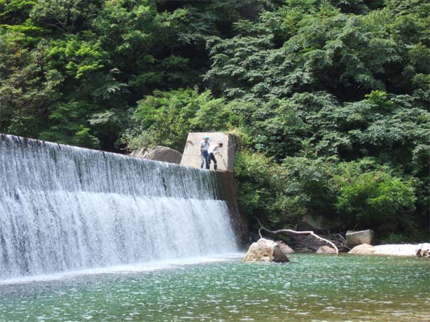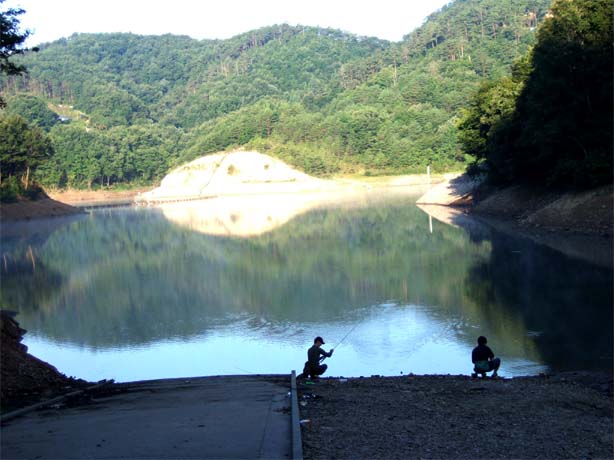 20007山形合宿ギコチリ編の巻 於 2007.8.25〜27 山形各所 天候 昼間暑いが朝晩は少し寒い 参加者 山形支部長(iさん)、omega師匠、U2先生、ギコチリ 今回は、完全に自分視点で書いてます。 何かございましたら、そっと(?)ご指摘下さい。 8月25日(1日目) 前川ダム ![]() 6:50頃 21cm サワムラ2.5インチにて 何をあせっていたのか、写真を撮らず。画像無し。 同じ前川にて場所移動後、かなりの浅いところにて、